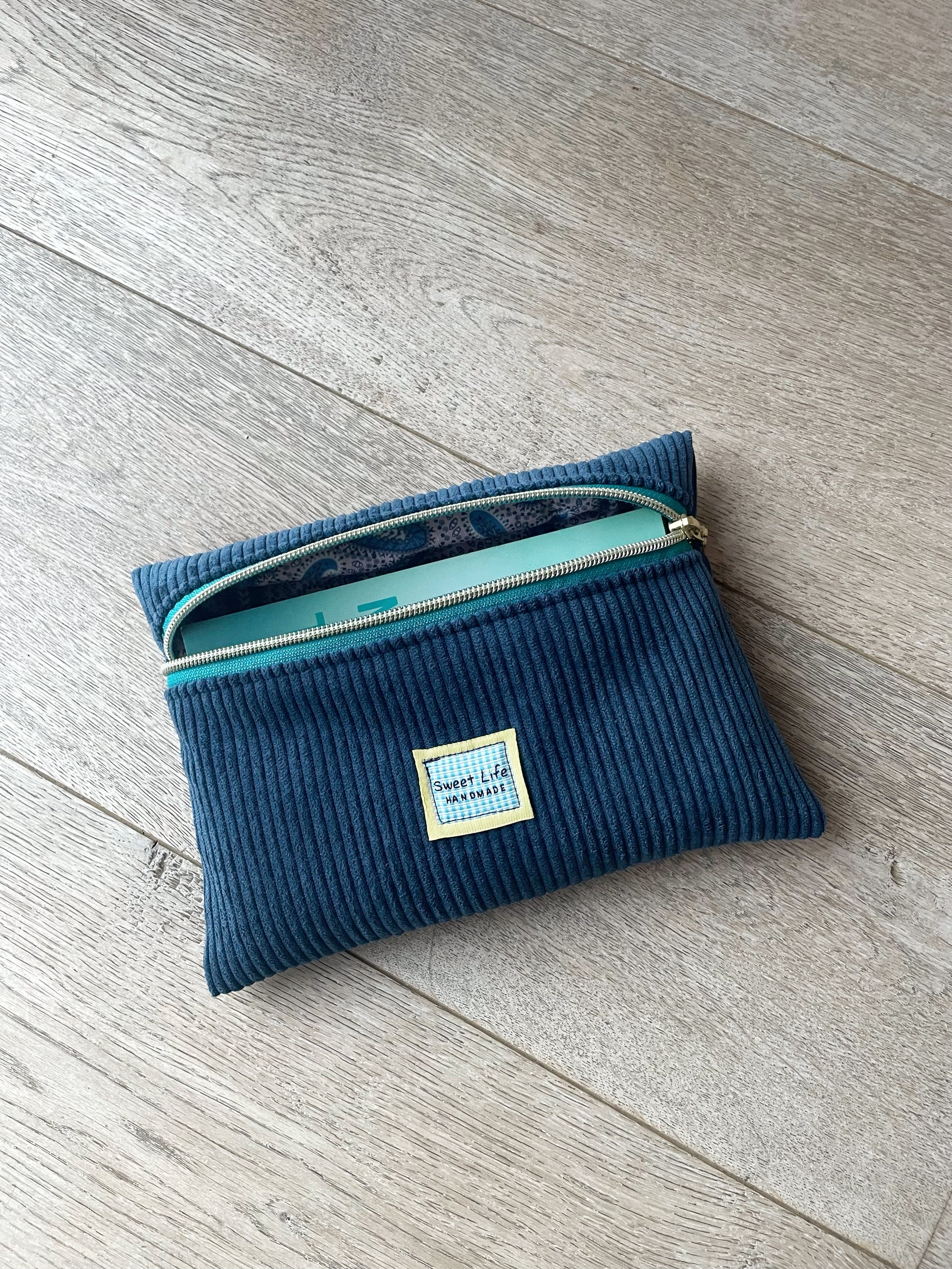 HOUSSE À LIVRE LISEUSE ZIPPÉE VELOURS CÔTELÉ PERSONNALISABLE